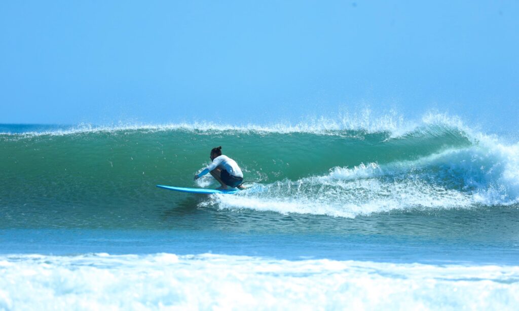 Natürlich das Wichtigste zu erst: Surfen. Der Strand bei der Unterkunft Mama Ines eignet sich hervorragend zum Surfen. Man überquert einen kleinen Fluss und ist direkt am Spot. Die schönsten Stunden waren am frühen morgen, kurz vor dem Sonnenaufgang. Die Menschenmenge im Wasser war überschaubar, das Meer schön ruhig und die Sonne glitzerte auf dem Wasser. Je nach Swell kann man schöne kleine mellow Waves oder aber auch große Brecher surfen. Bei High Tide ist es am besten und die Strömung hält sich in Grenzen. Mittags bzw. Nachmittags wird es oft etwas windiger und somit auch etwas bumpy.