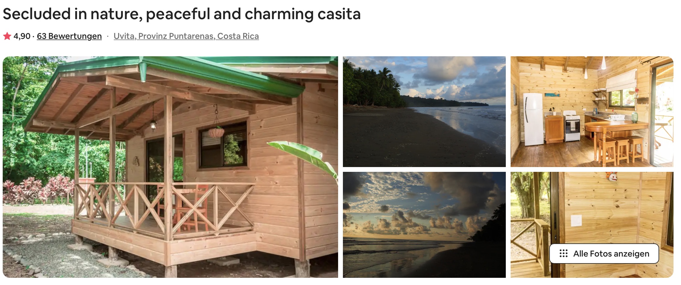 In Uvita hatten wir auch wieder eine Unterkunft ausgesucht, die etwas weiter weg vom Trubel ist. Hier haben wir die Casitas in Playa Ballena gefunden. Ingesamt gibt es 3 kleine Blockhütten für Kurzurlauber und 2 größere Häuser für Langzeitmieter. Die Blockhütten haben eine Küche, ein schönes Bad, ein sehr bequemes Bett und das schnellste Internet unser gesamten Reise. Es hat wirklich Spaß gemacht, hier diesen Artikel zu schreiben 🙂